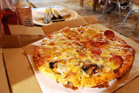 我們點的是10吋的Four Seasons,兩個人的我們當然就是要點這種才能一次吃到多種口味。跟Aria的比起來,我覺得YELLOW CAB的配料看起來比較多,但是兩者都很好吃,一樣是薄脆的餅皮,吃到美食的感覺真令人滿足