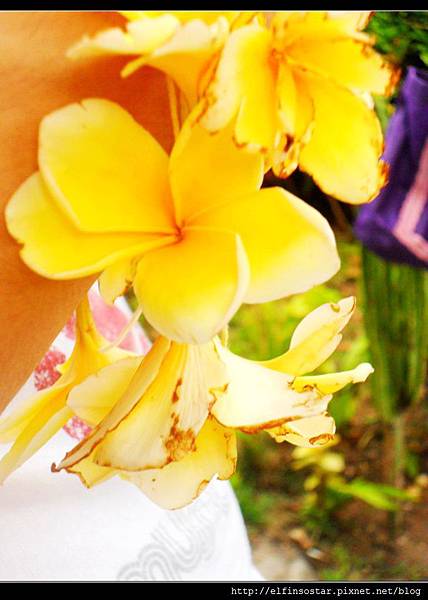 在機場外有專門獻雞蛋花圈的當地婦女
