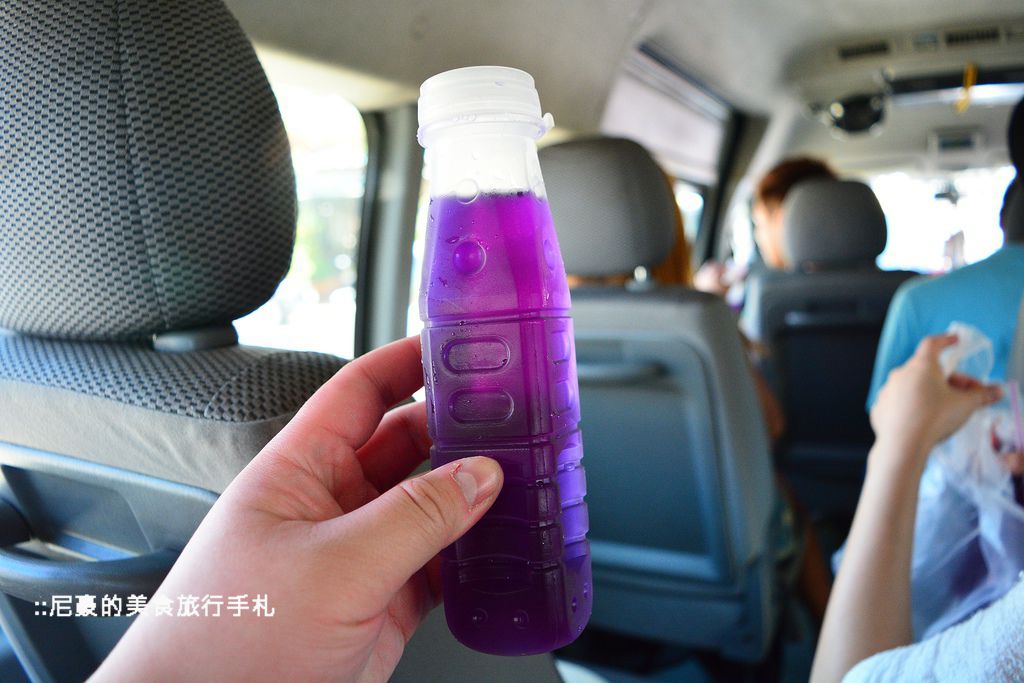 ▲拍拍照上車準備前往下個景點,這時領隊發給大家一人一瓶紫色飲料