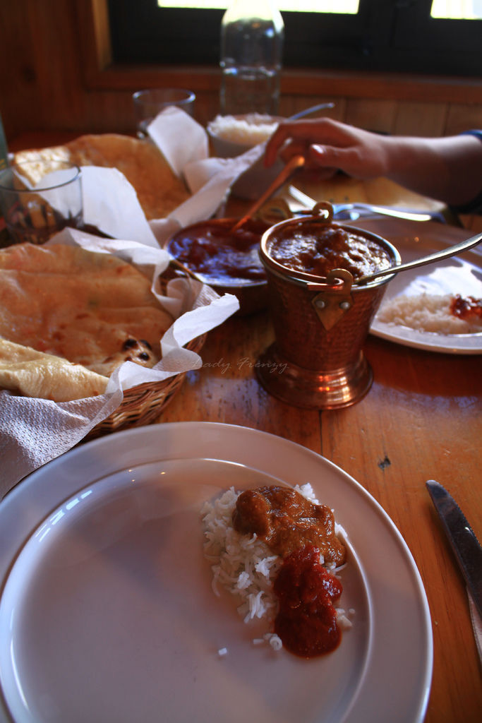 一邊溫習美好的回憶,一邊品嘗咖哩:Balti Lamb 和 Beef Vindaloo, Beef Vindaloo吸引我的地方是菜單上寫她有點葡式,腦子裏面一堆問號的情況下就點了它,我覺得兩種口味差不多,差別比較大的是肉的味道、跟辣度。這間店的辣度也不是開玩笑的,我水還喝了兩罐。