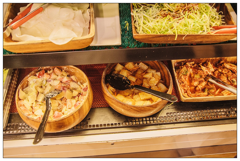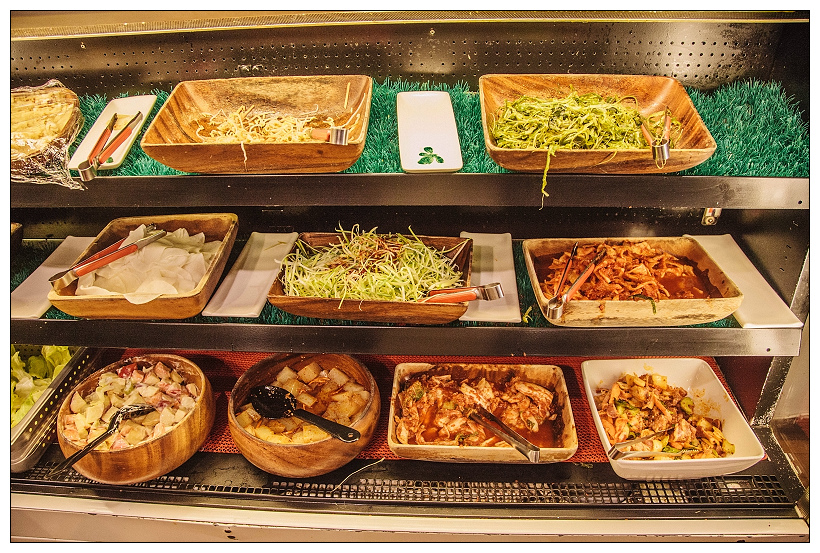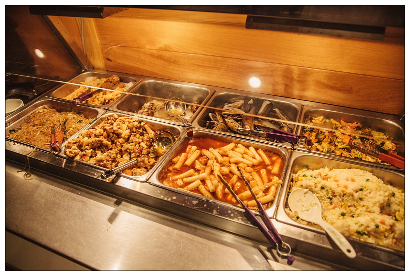 涼菜區就非常豐盛,除了有好多種泡菜外,還有一些養身蔬菜及沙拉。烤肉區則有11種肉類及海鮮類。其餘還有一些韓國壽司與蛋糕及水果和一些湯品。