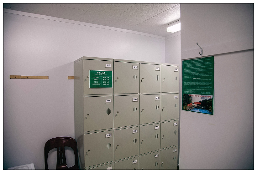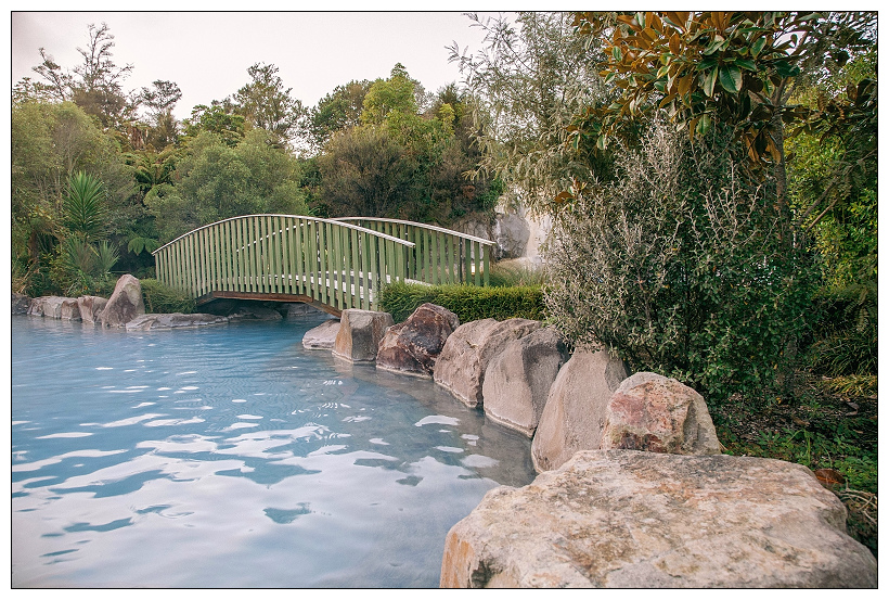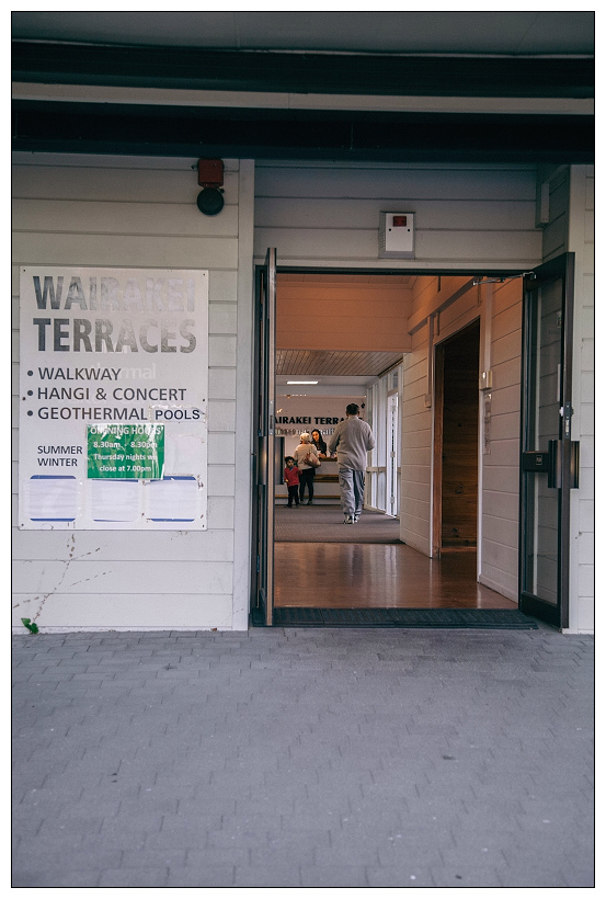 Wairakei Terraces是仿造因火山爆發而消失的pink and white terraces。一進門到櫃檯給了折價券後,栗詢問是否可以帶相機入內,櫃檯小姐很驚訝地說可以,但驚訝地是維尼那麼大台的相機。更衣室沒有浴簾,大家也都是很平常地背對著彼此換泳衣。一旁有可付費的鎖櫃,但一些遊客則都是隨興的將衣物摺好放在椅子上。