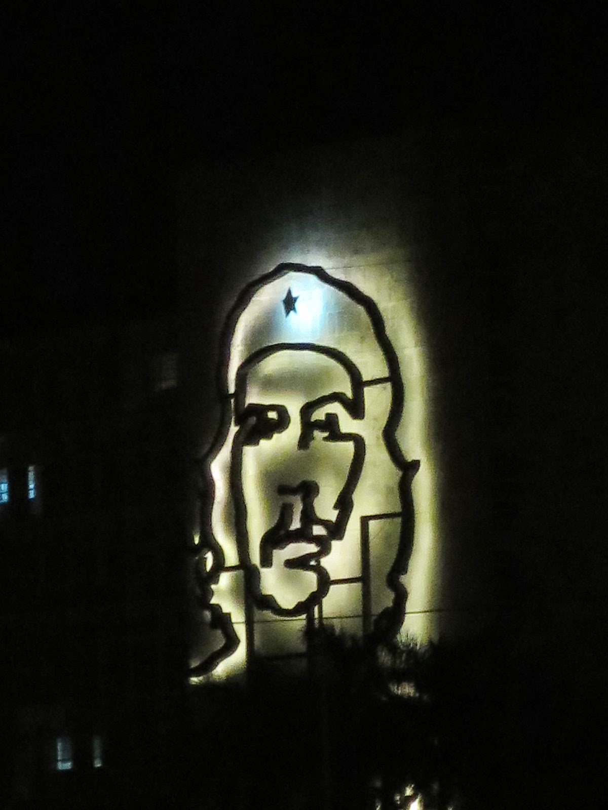 由機場到民宿路上, 途經革命廣場, 見到哲古華拉燈飾.