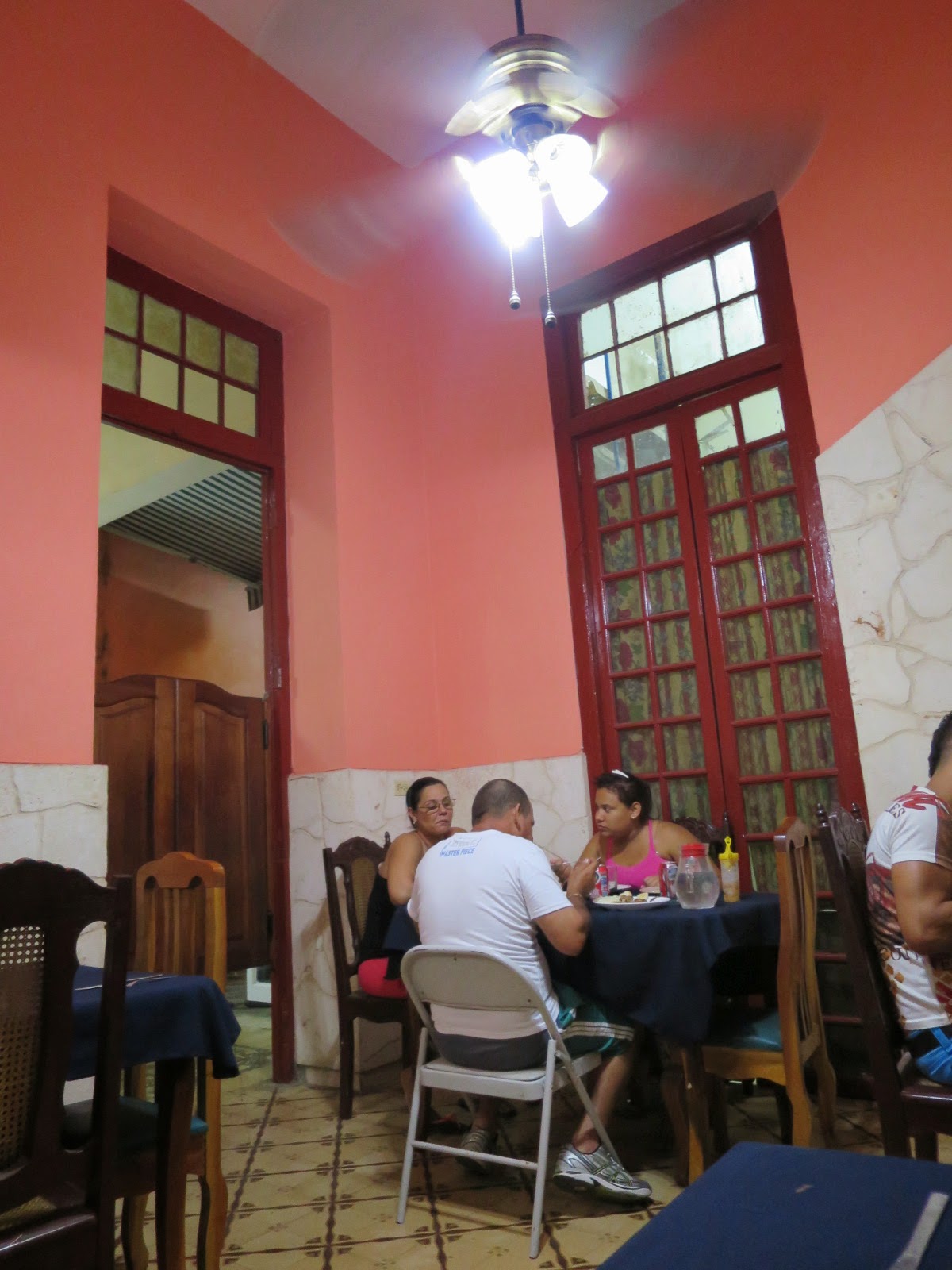 古巴很多民宿都會提供晚餐給住客, 額外收7至10CUC每位一餐, 不過Renso家沒有午、晚餐提供, 這時已晚上九時, 我才剛到埗, 一點也不知道在哪裏找吃才好~ Renso 立即讓我放心, 他帶我到附近一家餐廳吃晚飯, 他說: "這家餐廳很便宜, 我常常介紹客人去吃的."