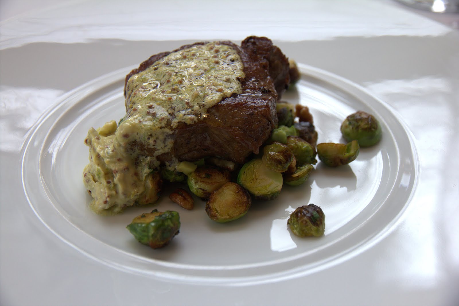 沒有存心誤導網友,不過文中的照片都是攝於2010年年末。除了兩個套餐以外,我們來另點了紅、白酒各一杯,搭配主餐的魚和牛。因為喜歡鮮嫩的口感,牛排我向來都點medium rare(四分熟),當天也不例外。固然牛排的生、熟度各家餐廳或有不同,但當天第一次送上桌的牛排無論如何都很難說是四分熟。畢竟是米其林三星的餐廳,和服務員反映過後,就是重新料理的牛排上桌。果然好的牛排還是要四分熟好吃呀!