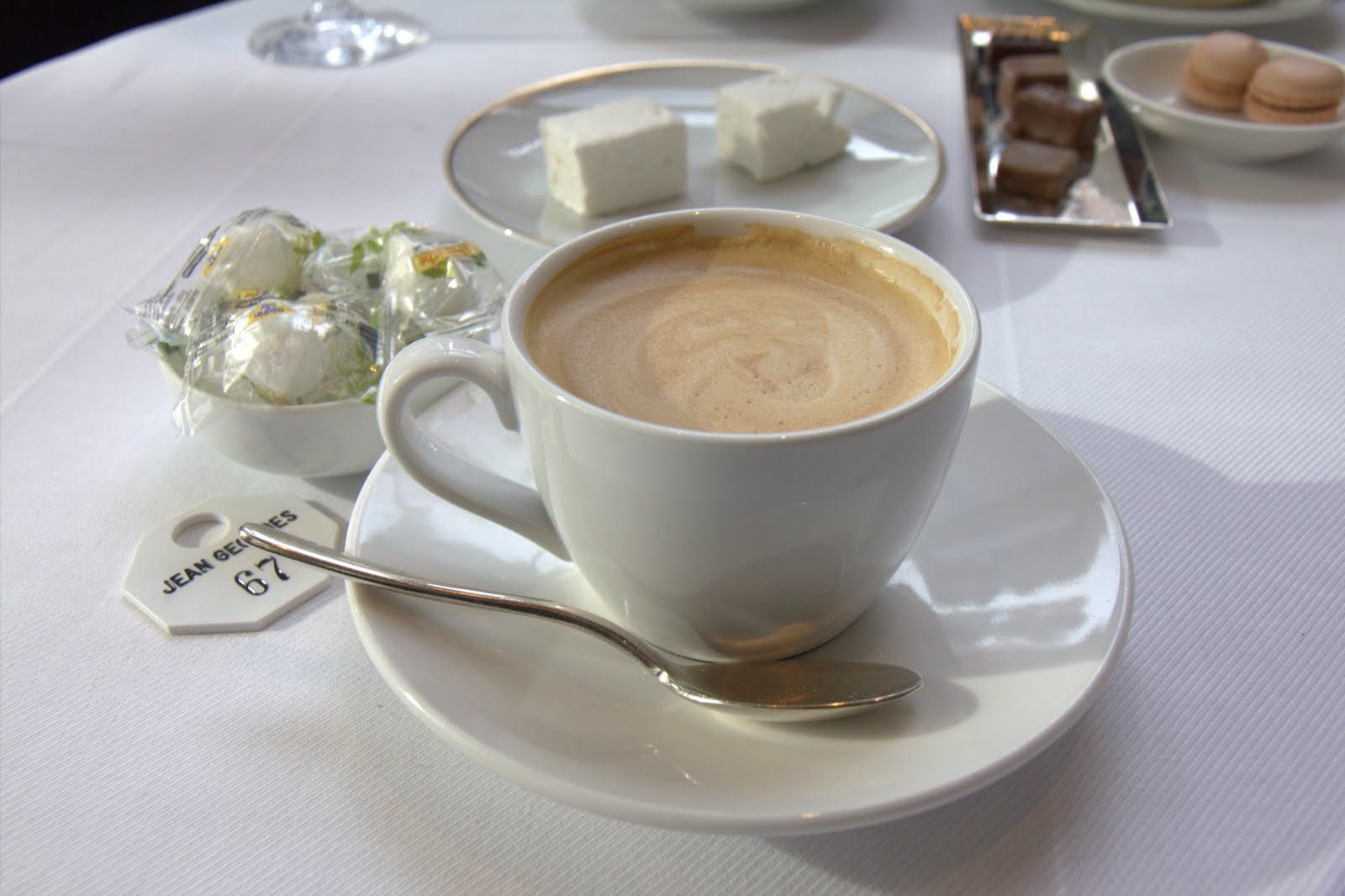 除了前菜和主菜以外,餐後的甜點還包括馬卡龍、巧克力以及現剪棉花糖,搭配咖啡或茶。