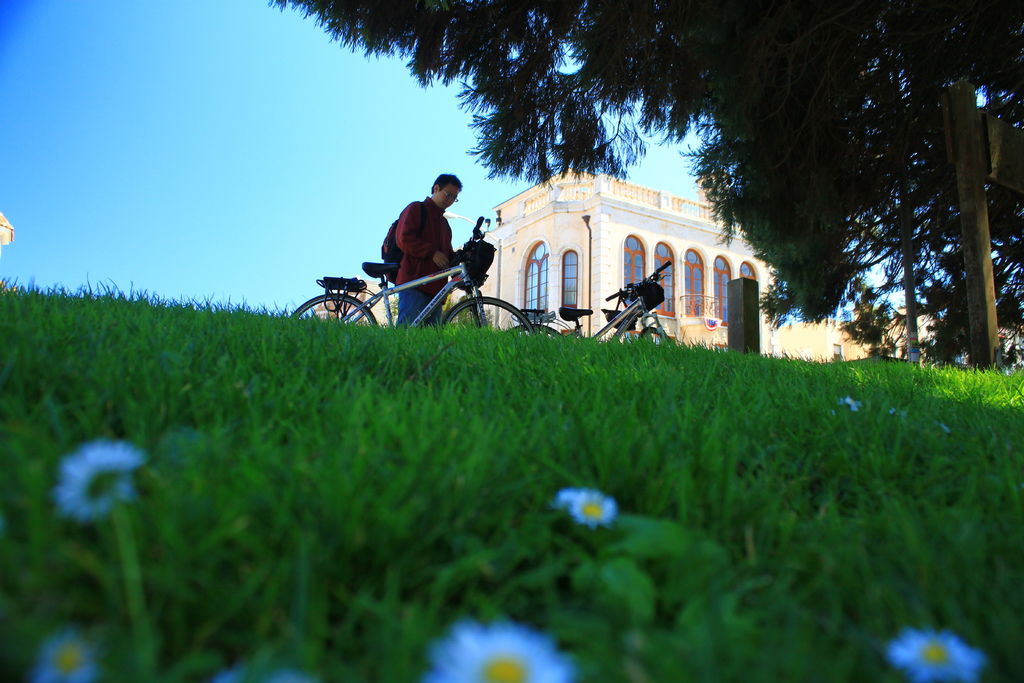 從Blazzing Saddles騎過來不是一件容易的事,因為剛上路就遇到令人折壽的一個大斜坡!! 我根本是佛心來的,因為怕拖累我男人、堅持跟他一直騎一台,在這個斜坡我看到另一組情侶騎協力車、打算衝刺上去,大概只上去了10公分就不行了,不死心又試了幾次、才兩個人都認命的下來推車,有夠淒涼;當時那個男生已經被罵到臭頭了。如果要長征去Sausalito,非常不建議騎協力車,自己騎一台還可以慢慢的掙扎上去。