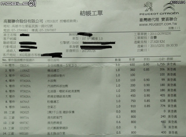 以下圖片為 去年年底最後一次保養 目前已經行駛 36800 KM
