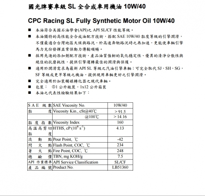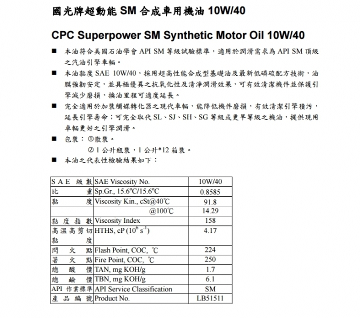 機油前面那個號數對台灣是沒用,就算是20W40對應環境溫度是-15度~40度以上