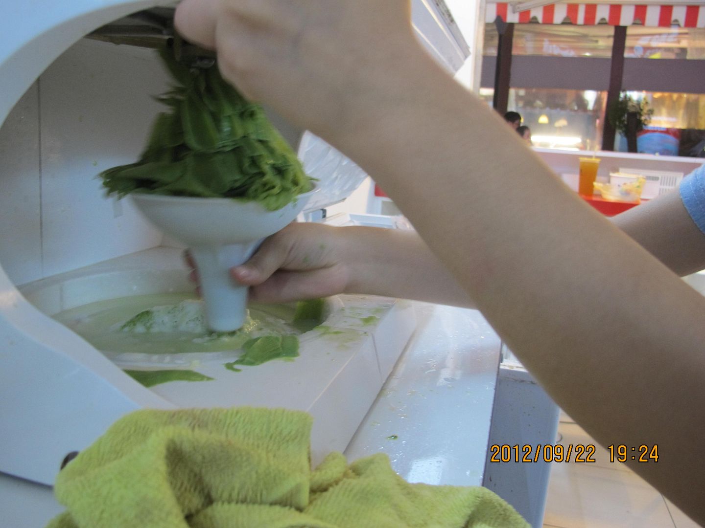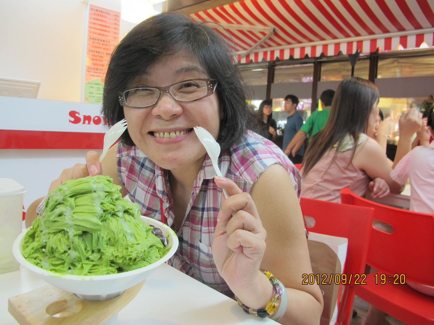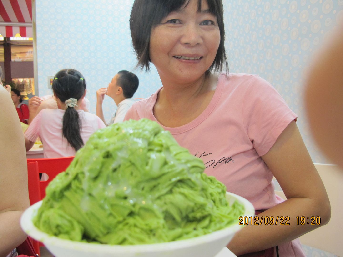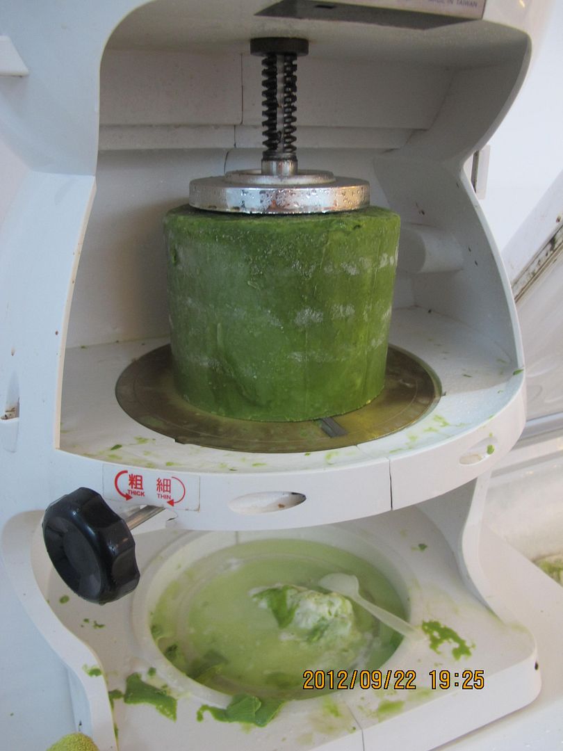 抹茶雪片冰的製作過程。