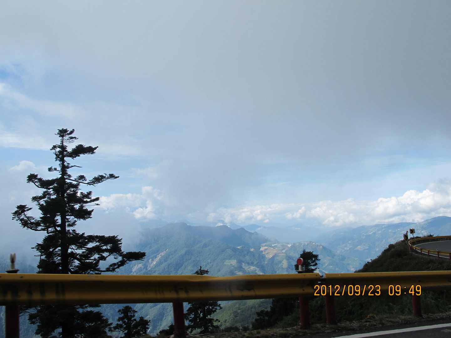 標高 1700 ~ 1400 公尺的路上有霧。