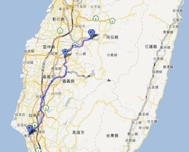 看路線圖就知道我今天只從埔里騎到集集,去的景點也少...