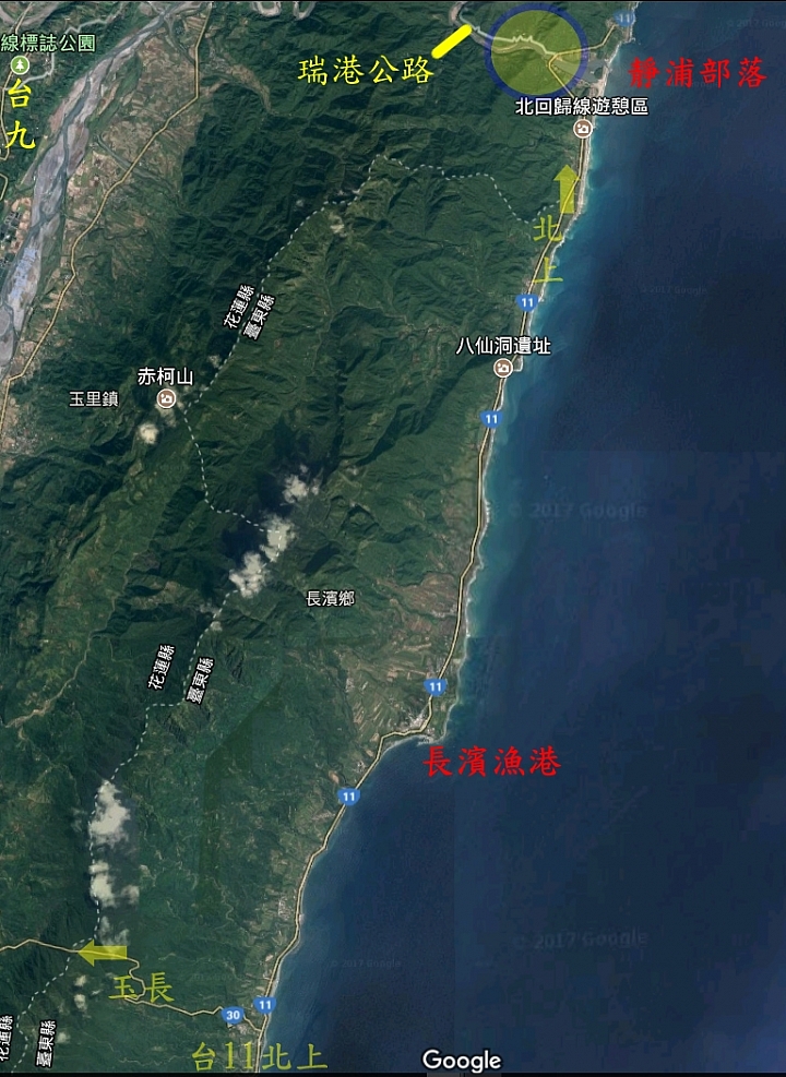 走台11北上 由,玉長公路轉台九 至瑞穗,必先經過 烏石鼻漁港 而由烏石鼻漁港出發到玉長公路僅2.4公里(註: 由烏石鼻漁港 ---> 靜浦部落 距約32公里 標準車程35分鐘) 不過玉長公路是在2007年6月16日全線通車,這個走法已被排除 [光豐轉台九 至瑞穗,更是不可能,因為最接近瑞穗的已通車道路唯一一條是 花64線 = 瑞港公路,20年前就存在(1986年全線貫通)]