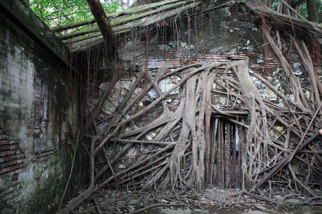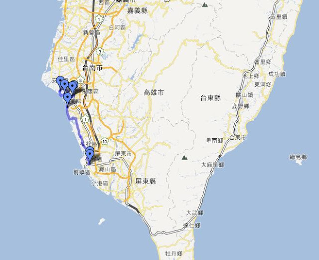 Day 6 台南->高雄台南是我大學待了四年的地方,但在畢業後,好像只回來過兩次,上一次回來也是2006的事了...仍然起個大早,雖然飯店有供應早餐,但不想吃,還是回來熟悉的地方吃早餐大學路上的麥當勞,過了十年,很感動的這間店還在...新口味的 滿福鮮蔬堡啥...麥當勞不是全省都一樣嗎?嗯...感覺不一樣...XD來到成大,光復校區的大門然後不知不覺的在成大待了一整個早上....打算把成大的遊記獨立出來一篇文章,就不寫在環島裡面...用榕園的照片做結吧...不過昨天才在想假日太多人,所以把孔廟的行程改成今天早上看來時間又拖太晚,還是避不開人潮..孔廟因為在成大待太久,所以在孔廟待的時間很短,差不多繞一圈就出去了大概只是讓我回憶一下孔廟長得什麼樣子而已...然後到周氏蝦捲去午餐星期天中午的人潮果然可怕啊...Orz光是排隊就排了快二十分鐘,但又不甘心來了吃不到,還是認命的排隊價目表咦...對焦對的地方好像不對吧...XD好吧,我懷疑周氏蝦捲的櫃檯店員是有挑過的,大概有讓排隊排的不耐煩的客人比較不會發脾氣的作用...XD終於..我的午餐:蝦捲+擔仔麵學生時代就很愛吃周氏蝦捲,當時還買過冷凍的回家自己用平底鍋煎,不過煎出來的就沒有在店面吃的好吃...十年沒再來過,品質並沒有因為出名了就變差,還是好吃不過就是要忍受比以前多很多人的缺點...吃完午餐後接著去安平,一來時間問題,一來看到又是人擠人的狀況,直接放棄安平古堡和億載金城...讓這兩個古蹟的回憶留到十年前吧...XD下一個目標:台江國家公園其實我旅遊前的功課做得不太足夠,只知道這邊可以搭竹筏外就什麼都不知道,手機導航定了個 國家公園管理處 就過來了,不過到了管理處後整個傻眼,怎麼這麼荒涼?附近一個人都沒有....硬著頭皮去問管理處裡正在吃午餐的管理員,才知道台江國家公園指的是一片區域而我要搭的竹筏在四草就在這裡,四草大眾廟,導航應該定這裡才對價目表有兩種可以選,台江觀光船全程約70分鐘,價格200元,綠隧竹筏全程約30分鐘,價格150元,我選的是綠隧竹筏...上船了我們搭的就是像對面一樣的船,現在在會船中...綠色隧道聽解說員說這裡有個特殊的名稱叫「天使之吻」因為樹枝和水裡的倒影看起來就像個嘴唇的形狀「綠色隧道」這個名稱很氾濫,台灣一堆地方都叫綠色隧道集集、古坑(昨天才去)、新屋、永安漁港、卑南、梅山、三義....etc.....不過四草的綠色隧道比較特別一點,它是水路就像照片,一條河旁邊種樹,而樹是往河的方向生長..而搭船就是竹筏走過去再原路走回來景色不錯,錢還算花的值得...下船後,走到隧道旁的小路拍生物彈塗魚,保護色很好,要仔細點看螃蟹然後晃到附近的抹香鯨博魚館很小一間,繞一圈大概只需要十分鐘...接著往 鹽田生態文化村不過這裡看起來沒什麼規劃,景色不特殊,也沒什麼人沒什麼可以逛的,拍張鹽田照片就算交待吧...XD原本還要去四草砲台的,但被導航騙了,告訴我已經到目的地,但怎麼看都不像四草砲台,懶得找就作罷...(結果後來才發現四草砲台就在大眾廟旁邊,但那是後來的事了...)看還有一點時間,於是繞回安平安平古堡、安平樹屋都在附近,我大學的時候去過古堡,但對樹屋卻沒什麼印象,算了,懶得去回想當時為什麼會只去古堡沒去樹屋的原因,今天還有時間就去樹屋晃晃吧...德記洋行門口安平樹屋,假日的人真是多啊...樹屋原來是德記洋行的倉庫,不過現在有點反客為主,它反而成為遊客參觀的重點而德記洋行目前內部擺了一些蠟像在展示,不過禁止拍照,所以就沒相片了...離開安平,往下一個目的地:黃金海岸有小孩在玩沙對黃金海岸也有點特殊感情,大學時心情不好的時候,常會一個人騎著車到這裡散心、發呆原本只想路過看看的,然後趕在天黑前到達高雄不過一到這裡突然就不太想離開...心一橫,反正台17 路又大又直晚上還有路燈,又不是騎山路,白天騎車和晚上騎車有什麼不同?於是一直等到天整個黑下來,才心不甘情不願的離開..接著就是趕路,直接到高雄車站附近的飯店 check in 之後,吃完晚餐,繼續到愛河之心愛河之心的特色就是這座陸橋,目標很大很好找,遠遠看到就知道到了...於是今天就在這美麗的夜景中劃下句點.....住宿小評:華宏飯店 950元(星期日晚上)住到第六晚,終於有讓我想貼照片的飯店,整間飯店還蠻有設計感的,而且價位也便宜,又在火車店旁邊硬要找缺點的話,就是我住的房間浴室小了點,沒有浴缸,不過我不介意這個就是,推薦!!花費住宿 :950食物飲水:345加油 :138門票停車:235(孔廟+台江綠隧竹筏+抹香鯨+樹屋)---合計:1668里程:94.3 km預告:Day 7 高雄->墾丁 (美麗島站、西子灣、旗津、墾丁大街)