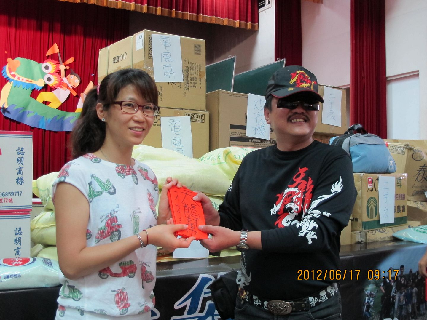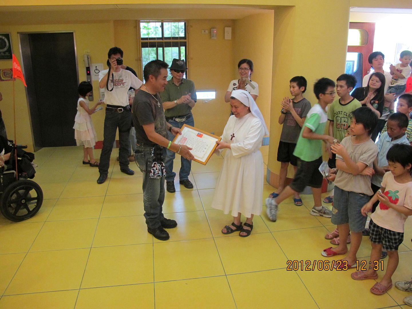 院方致贈感謝狀給台灣哈雷車主俱樂部,