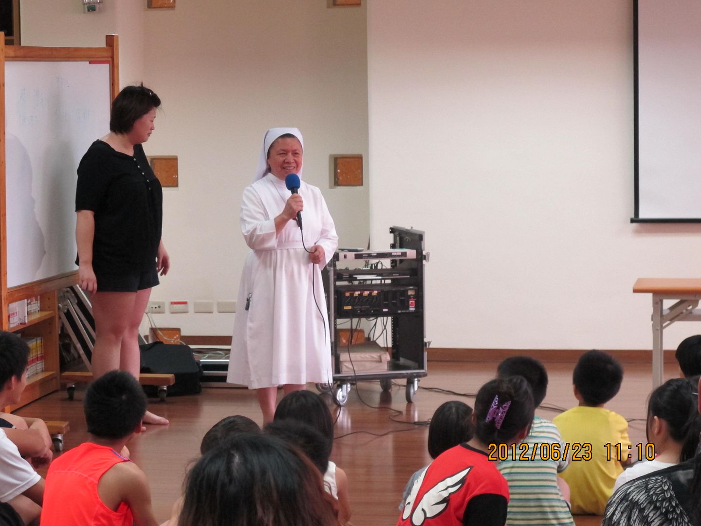 勉勵在場的院童以樂觀陽光的態度面對人生挑戰。