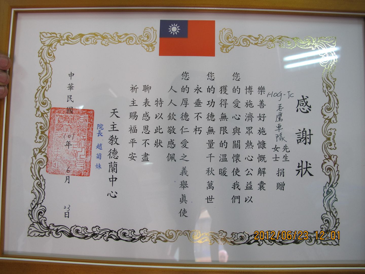 榮耀歸主 .. 感謝狀 .... 歸老鷹車隊。
