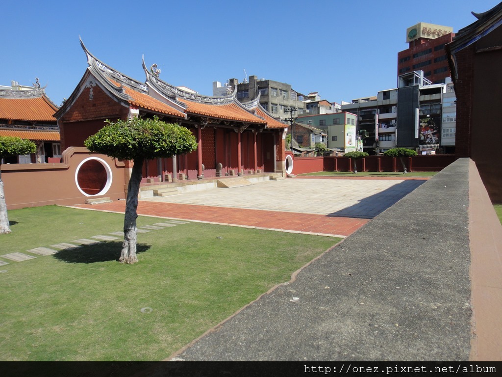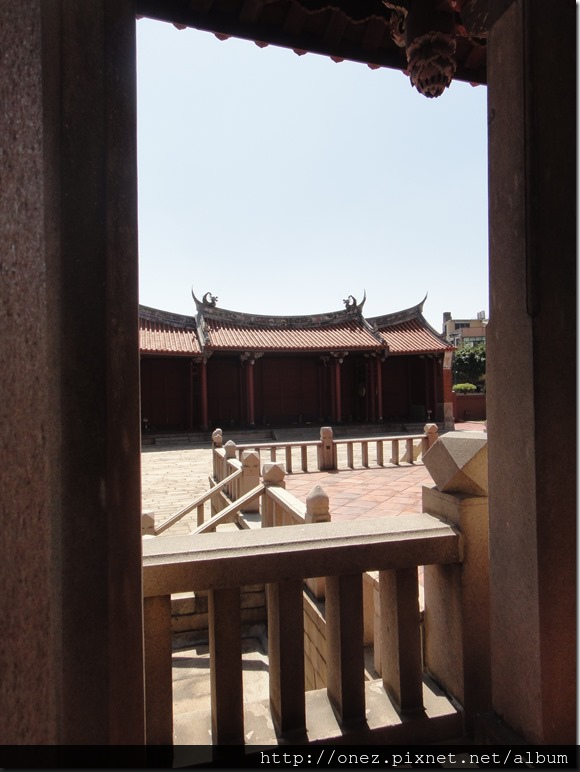 其實你很不容易在這個地方拍下屬於這建築單獨搭配著蔚藍天空的模樣,畢竟一牆之隔就是住家,不過在這現代與古老相搭配之下,是不是也輝映一種成長的美呢?也許因為非假日吧,所以遊客更顯得稀少,更可以說,整個廣場都被我霸佔了,我覺得孔廟是一個很有趣的祭祀現象,因為那並沒有我們印象中香火鼎盛的朝拜人群,有的只是人們在心中一份尊敬跟追思。