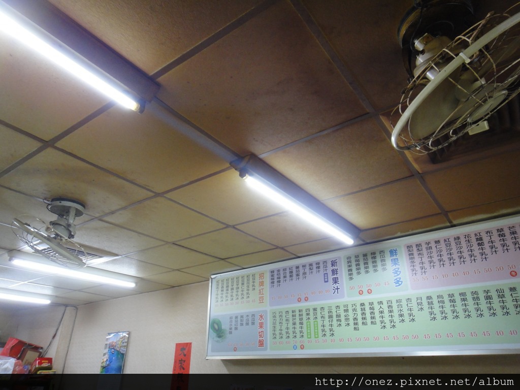 店裡有著古色古香的木製天花板和旋轉電扇,就是一種,冰果室的感覺,老闆特別說了,這個時候的木瓜有點苦,所以木瓜牛乳喝起來有點苦味,但不減香醇,口感相當微妙,在濃濃木瓜香和甜甜奶味中,還有一點微苦,或許這應該是彰化學子們成長中的味道,也可能是很多人青春年華中的感覺。