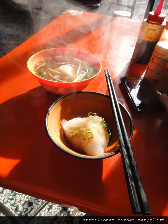 其實好像,忘了是哪種味道了,依然美味,不過記憶中應該還有個老店面,只是我想不起來在哪,品嚐過肉圓後,一邊跟老闆閒聊著為何肉圓下鍋前還要先抹一層漿,老闆跟我解釋完那是要幫肉圓補妝後,我想起來我還要去孔廟,匆匆走了出來,但一點頭緒都沒,於是又走回店裡問老闆,老闆熱心地說告訴我前方過去右轉之後,我說了聲謝謝之後又要離開時,老闆出聲制止我了!「等一下啦,我還沒說完。」
