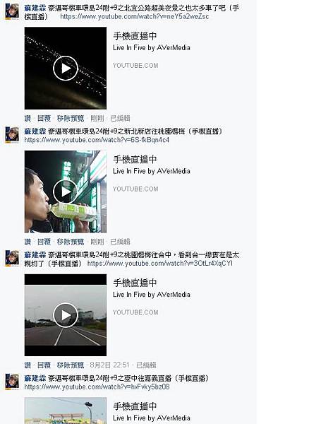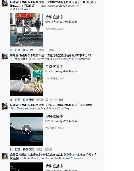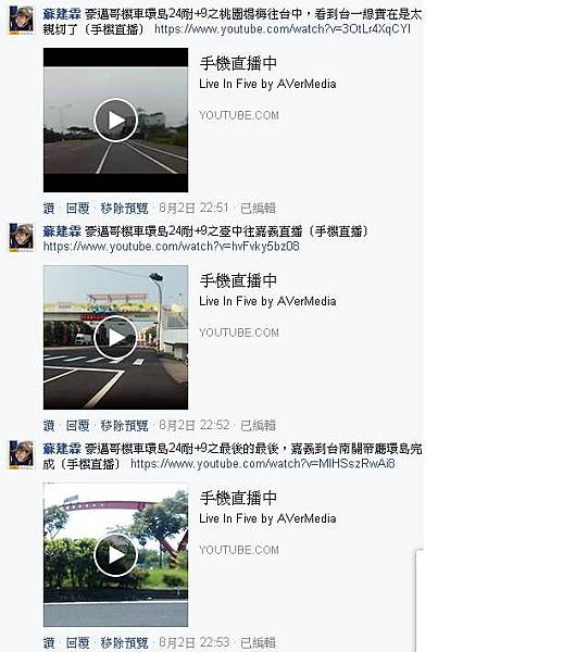 直播記錄:在臉書"台灣機車環島美景"社團從7/30的03:06開始直播
