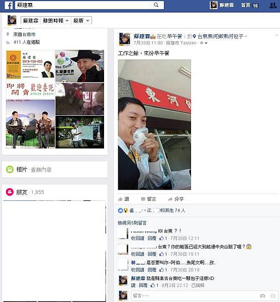 11:00:臉書打卡記錄。工作之餘,來份早午餐@台東東河鄉東河包子