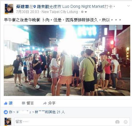 20:03:臉書打卡記錄。早午餐之後是午晚餐:卜肉。但是,因為要排隊排很久,所以。。。@羅東觀光夜市