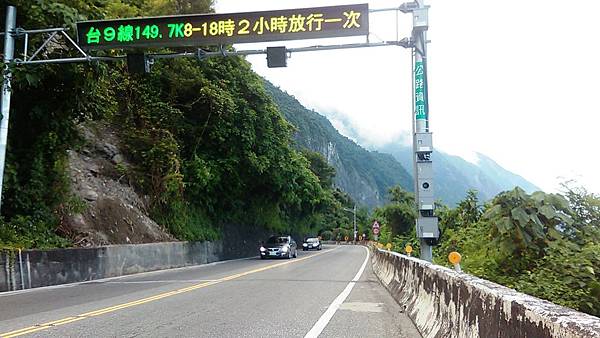 16:53蘇花公路的台9線149.7k修路中?@進入崇德隧道之前的電子跑馬燈