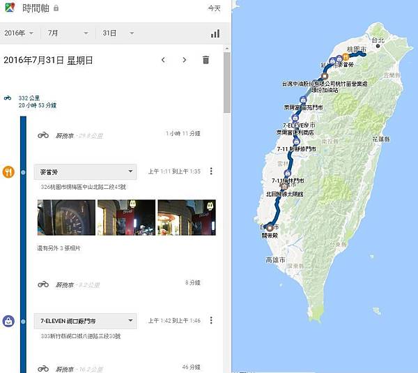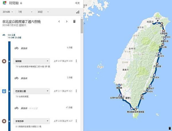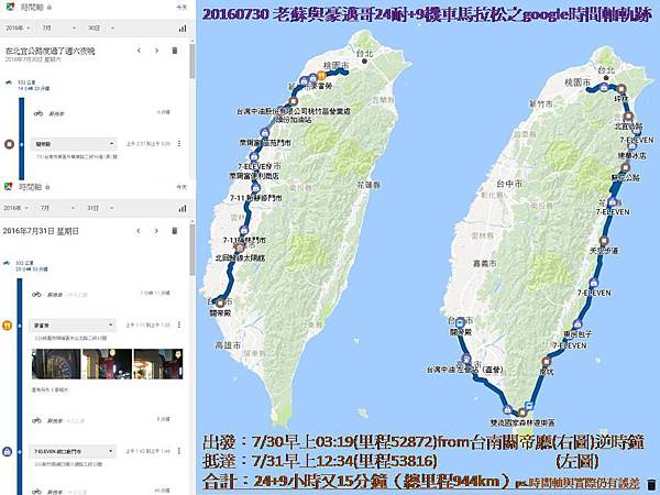 老蘇與豪邁哥環島24耐加9機車馬拉松(4)google map時間軸軌跡
