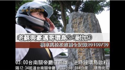 直播全記錄:請參見專文:老蘇與豪邁哥環島24耐加9機車馬拉松(3)老蘇用直播影片帶你環島篇