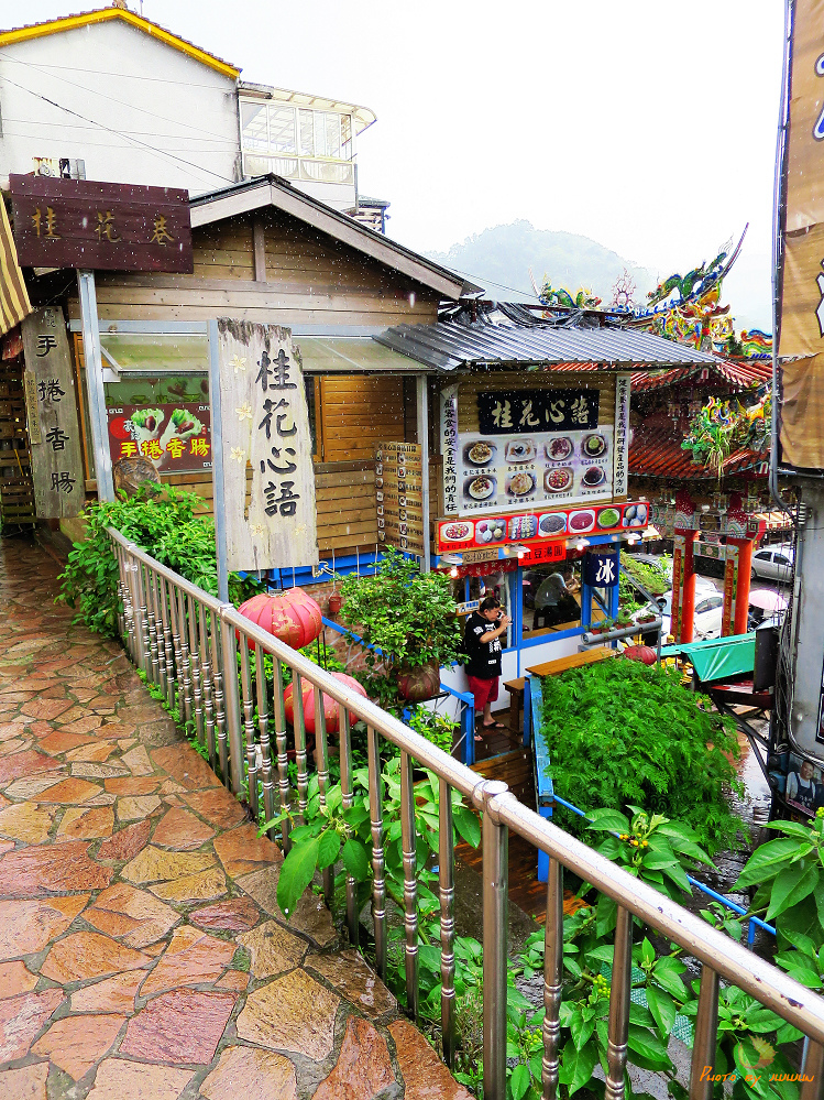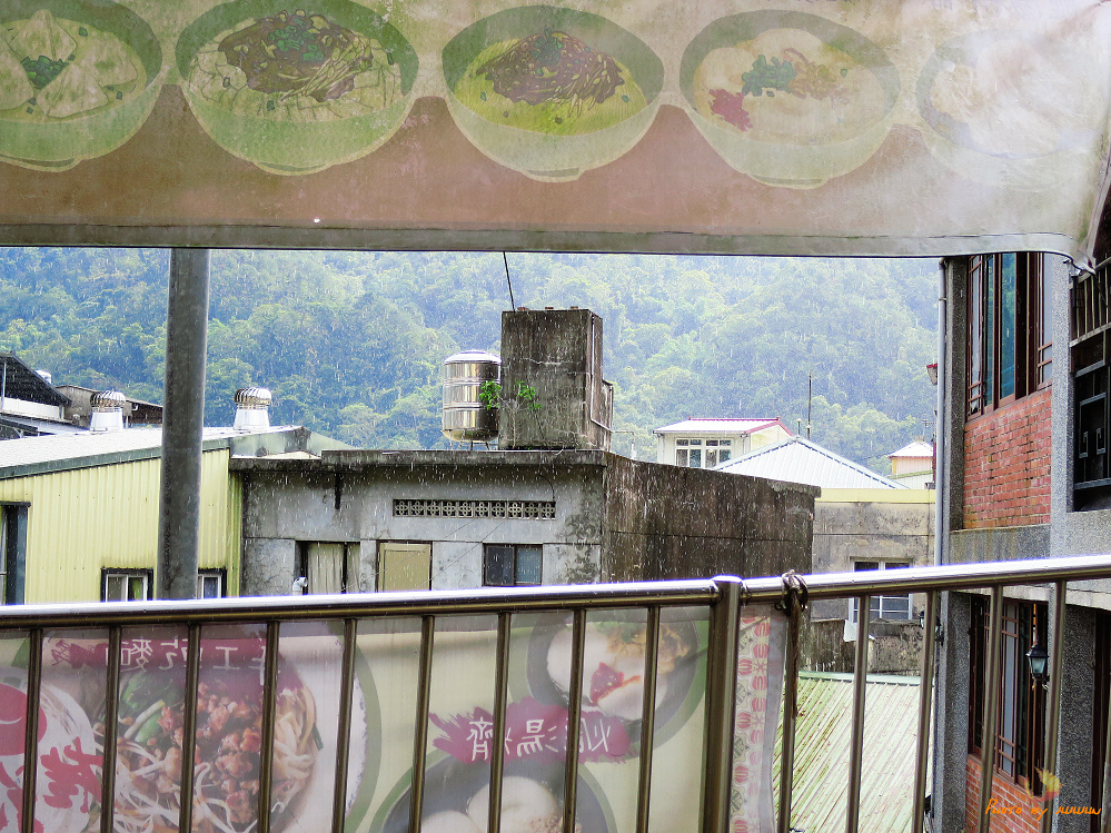 冰吃完真的有飽,山雨來的快一轉頭天空下起雨來,這....這這只好再點一杯桂花紅茶賞雨,