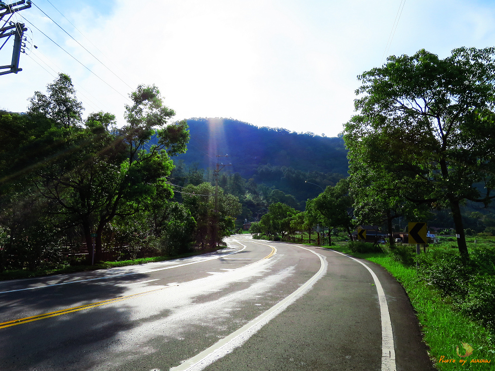回程路上陽光灑落雨後的路面泛起光亮的色澤,是記憶中的南庄....