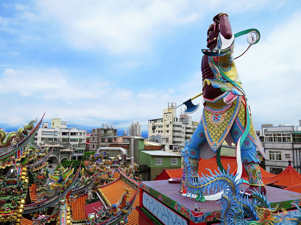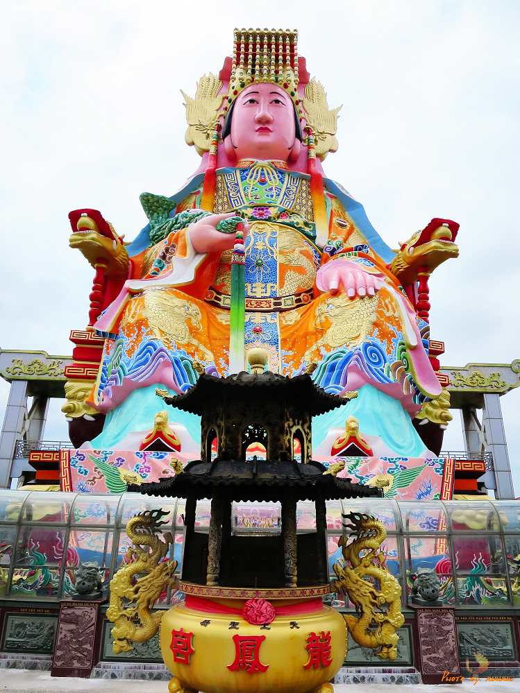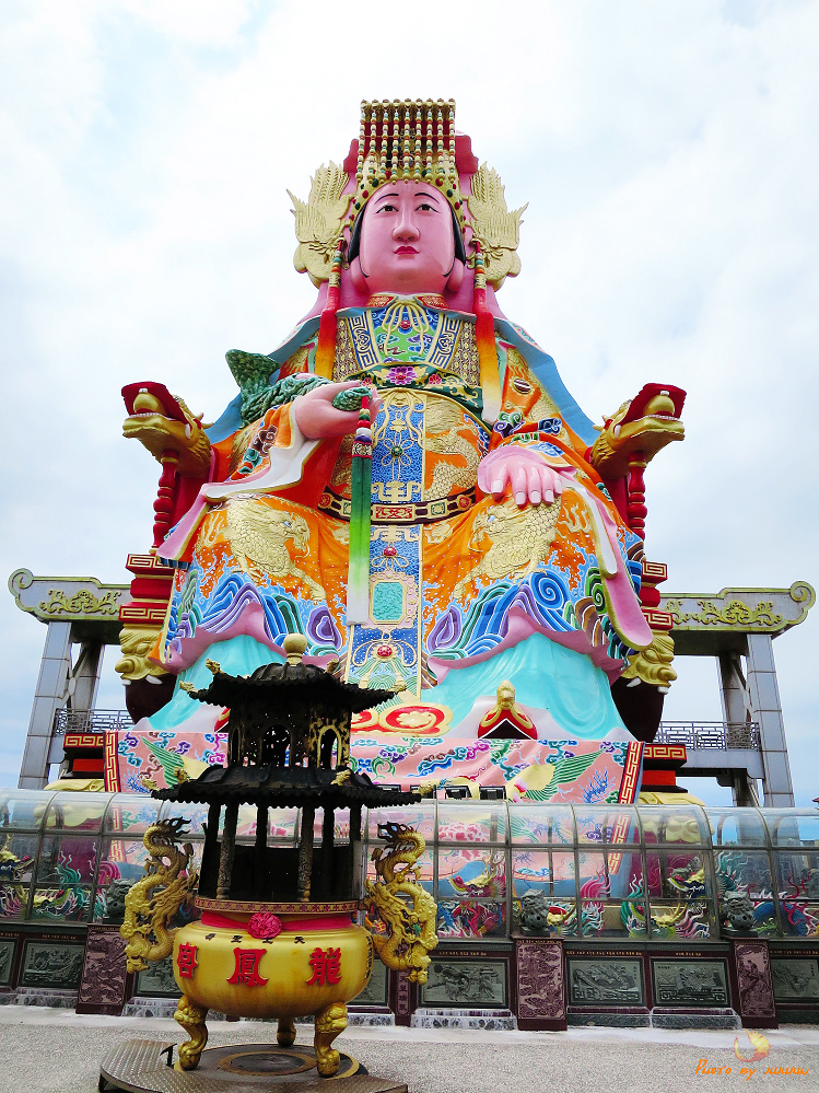 廟內拜拜很寧靜舒適,拜完後走到頂樓來見見這尊大媽祖神像,