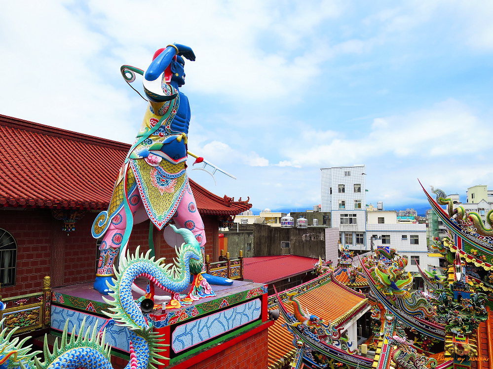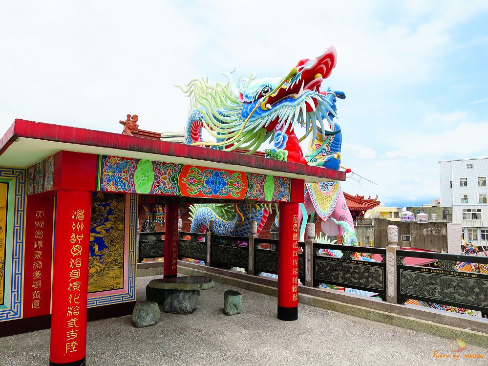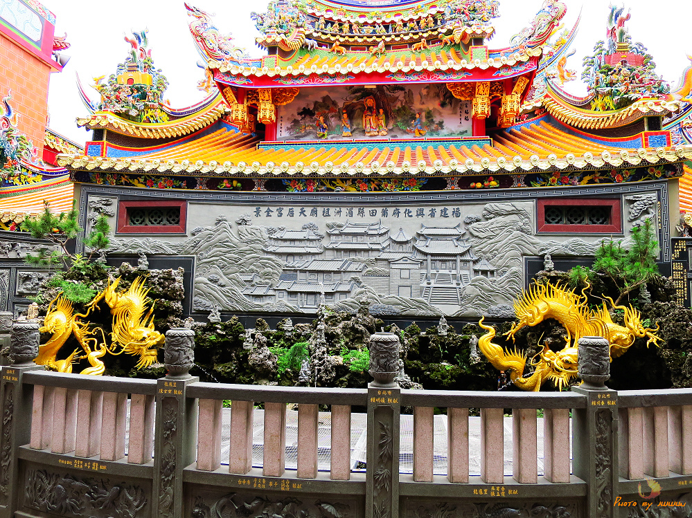 雕刻方面在大神像千里眼、順風耳後有龍有鳳很對應廟名,