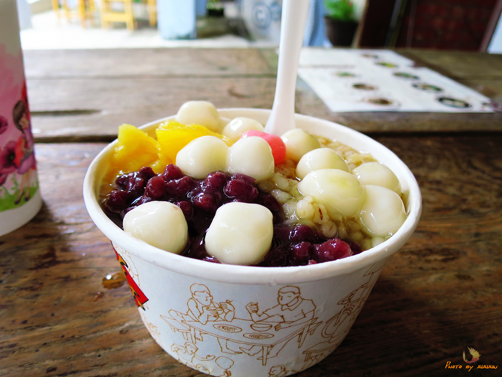 撇眼見到賣桂花冰,二話不說來去嚐一碗....