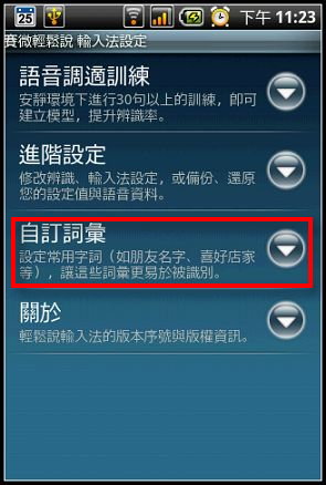 可以設定一些常用的設定,比較重要的是可以被份語音模型與自訂詞彙到記憶卡,改天換手機或更新韌體後也不用重裝只要重新匯入備份檔即可: