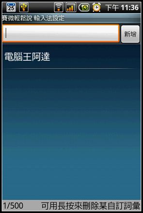 第三個自訂詞彙則是可以設定常用的字詞,一般可以設定常使用的人名,這樣輸入速度也會加快很多: