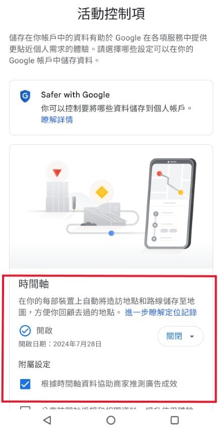 我嚇到怎麼時間軸突然問我這個問題,為了怕不能紀錄,我當然選擇「開啟備份」,然後它接下來要我開啟這支手機的定位記錄功能,我覺得很奇怪,這些功能不是早就開啟了嗎?我時間軸從一推出就使用,至少10年持續在用,怎麼現在突然這樣要我設定?我當然選擇開啟。