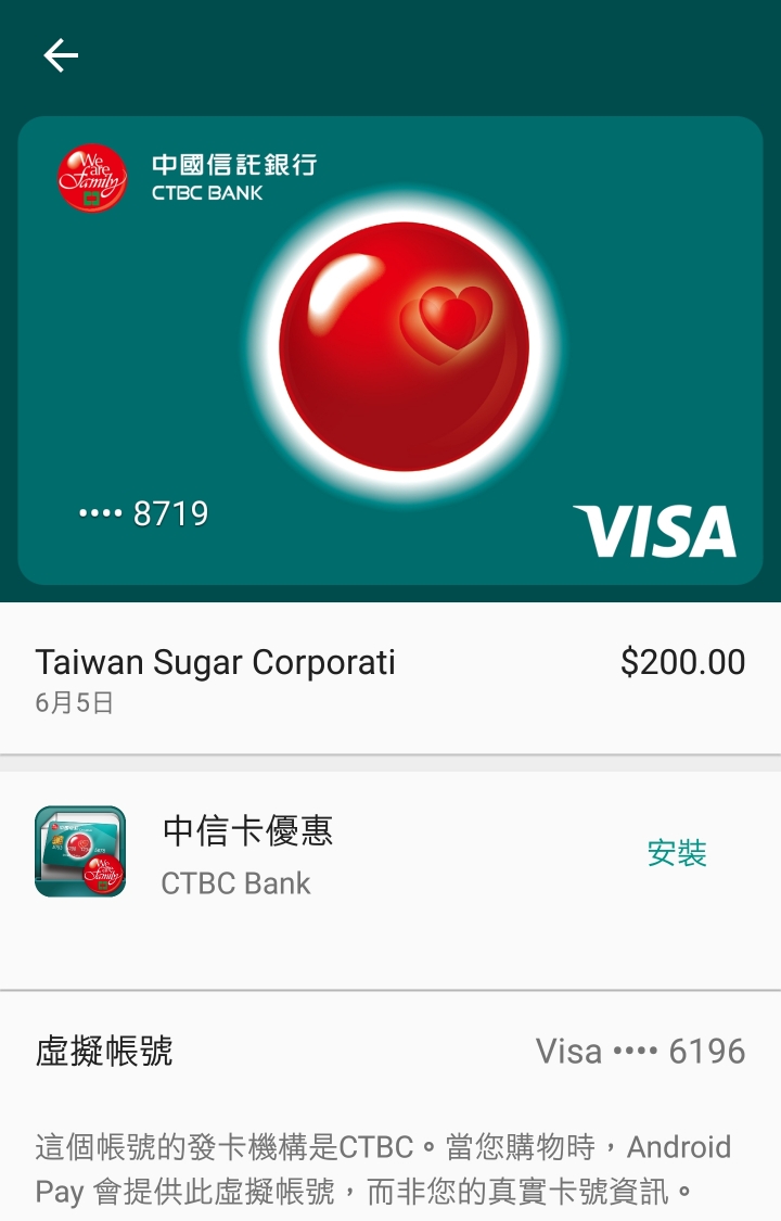 csfp1 wrote:----------...(恕刪) 稍早跑去台糖量販首刷android pay成功!但後來去附近的2間全聯消費刷android pay,卻怎麼放都感應不到,不知道是什麼原因><卡片確定是用中信卡,手機是HTC 10!ps:剛把設定改為「立即鎖定」及「按下電源按鈕立即鎖定」,等改天有空再來去試試看。