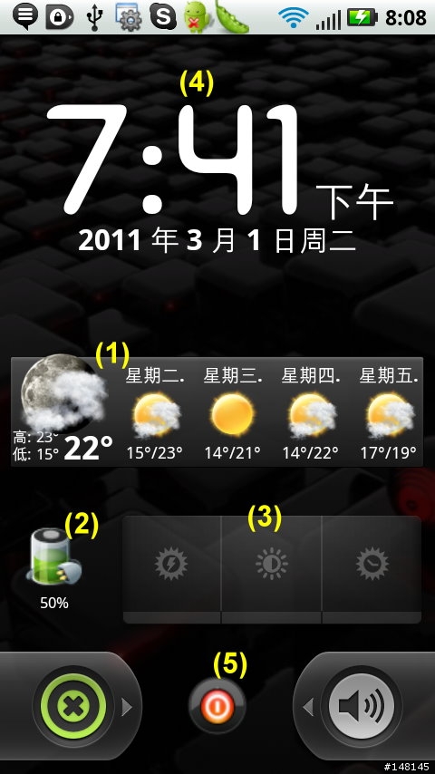 (4)是解鎖屏程式「WidgetLocker锁屏助手」簡體版內附的時間