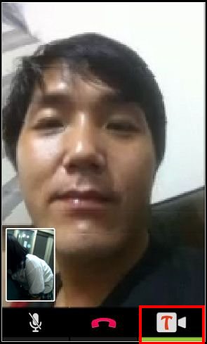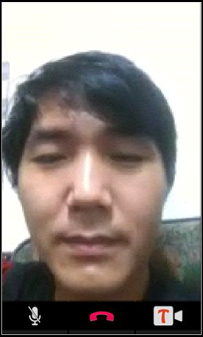 筆者的帥哥老弟,他使用iPhone4,筆者使用HD2 Android,一開始只會有對方的畫面,但只要點右下角的「Tango」後就會開啟Android手機端的鏡頭(不過是後面的鏡頭,Android機種除了i9000以外沒有內建前置鏡頭):