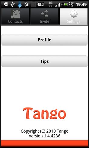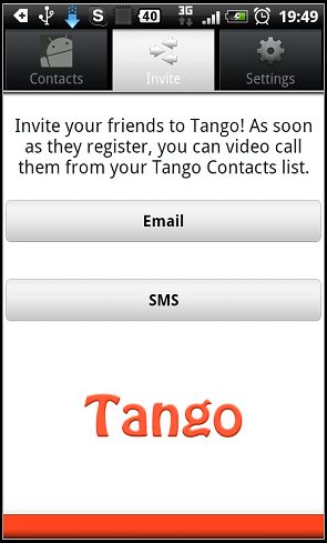 「Invite」可使用E-Mail或簡訊的方式邀請親友加入「Tango」的行列,「Settings」則可修改聯絡人的資訊: