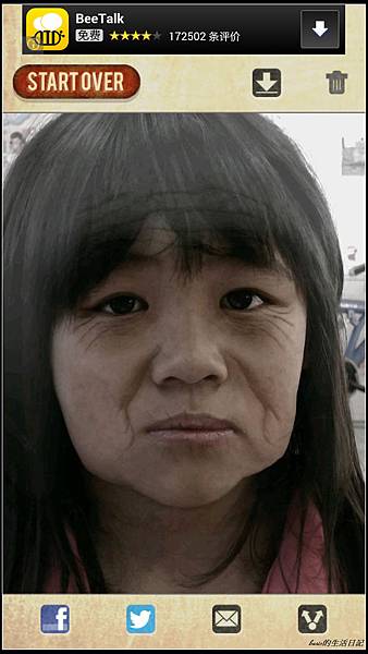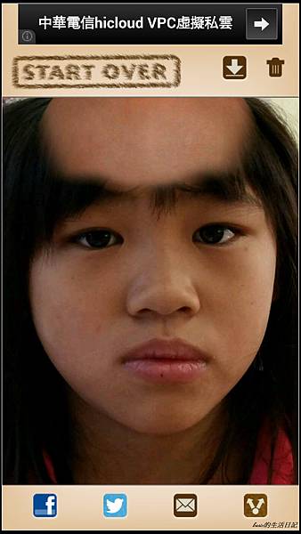 步驟跟fatbooth一樣 , 但是如果要效果好的話 , 女生最好瀏海不要太長 , 不然就會變成這樣 , 效果比較不自然..