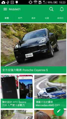 各位使用Mobile01 APP的朋友,我們已經製作了新的版本,請大家有空時可以到 Google Play商店 下載新的版本 。此次我們製作了新的使用介面並增加一些方便的新功能:全新的使用介面:更方便的收藏及分區選單:在選單頁及內容頁皆可快速的使用收藏功能(需登入):操作示意: