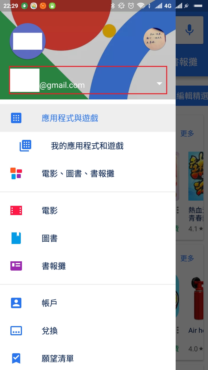 現在Google Play鑑賞期到底有多久我也不太清楚, 不過如果您APP剛買沒多久, 也許還有機會按退款.Tasker我看銷售活動結束時間還有5天!進Google Play後, 按一下左上角的三條線後, 如下圖紅色框框的地方就可以做帳號切換.靈異大王 wrote:請問如何切換,在設...(恕刪)