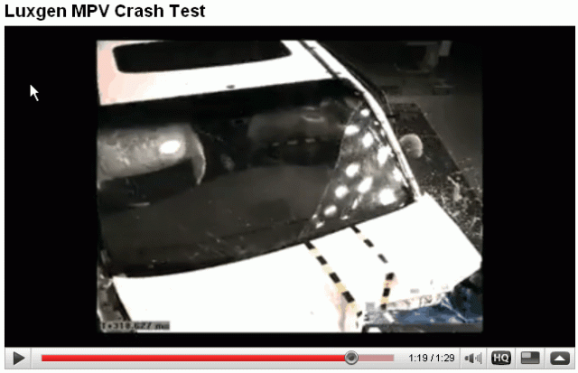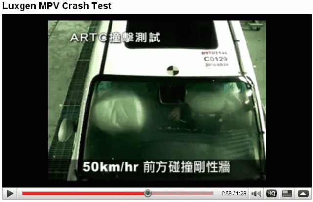 發現很多幕只要是前方偏置撞完就是直接移到沒撞的另一邊為何不停留在撞擊的正駕駛座那面??這是其中一幕,感覺A柱變形了這一幕正撞也是A柱那邊怪怪的希望裕隆把完整的畫面放出來而不是剪接過的不過裕隆敢拿去撞就比一堆撞完不敢拿數據出來的車廠好太多了值得鼓勵