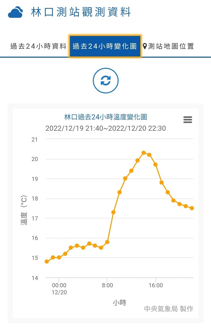 (光看圖表格子的密度就知道,林口的溫度格線總是比較少,日夜溫差小)