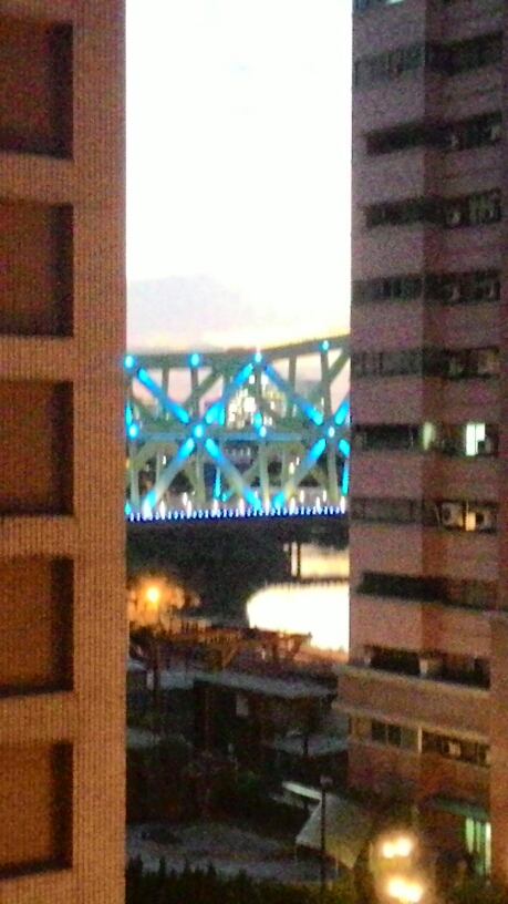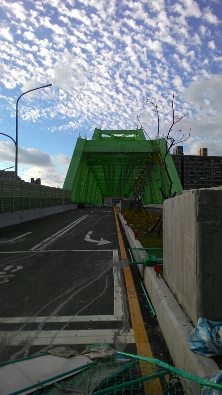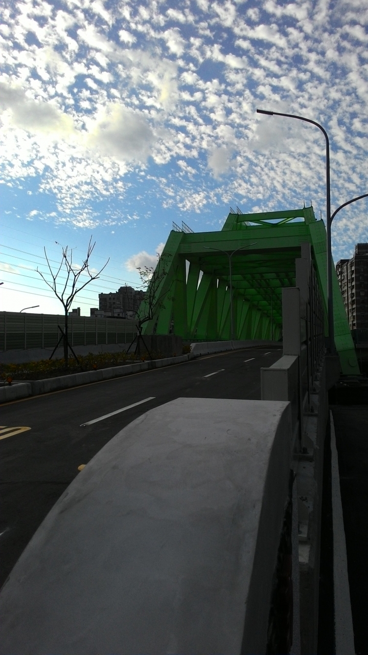 看起來就像社后的大鐵橋好像已幾近完工?交通標線也劃好了,往社后方向道路規劃是縮減偏移,繞行電塔兩側,所以往社后方向車速應該不能太快,否則,易撞電塔!目前看起來沒什麼大功能?橋兩端都還沒直通道路?一般平常應還是以走中興路為主?目前功能或許只有:消防隊的消防救護車進出不易被塞?學生過河上學所繞的路較短?中興路塞車或社后橋封橋時的替代道路吧?------------------------------------------------------------------------------另外,橋上層,建議規劃為景觀餐廳,或咖啡廳,多少增加些財政收入?