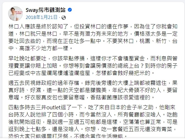 畢竟林口距離市區僅20分鐘車程,價格太低也打到市區百貨的櫃位