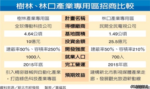 新北市經發局最近接連完成林口(文大三)產業專用區招商,由民間全民電視公司獲選,將投入25.5億元資金,預計2015年底完工營運。